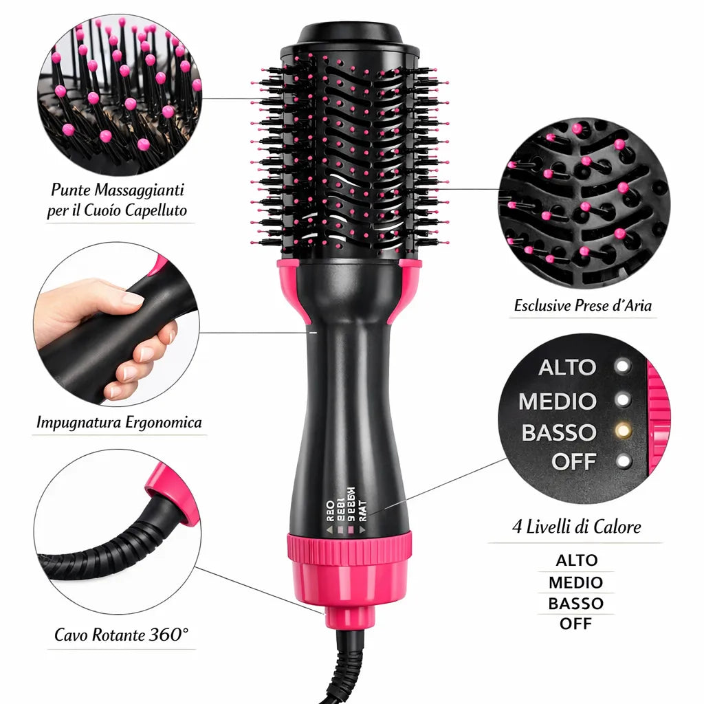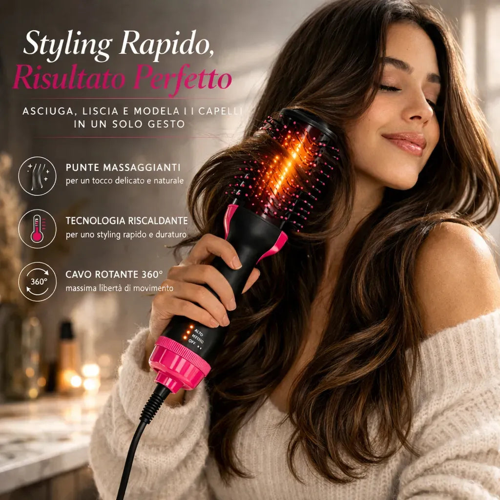 Perché unisce asciugatura e styling in un solo strumento: meno tempo, meno fatica, più ordine e una piega più curata ogni giorno.