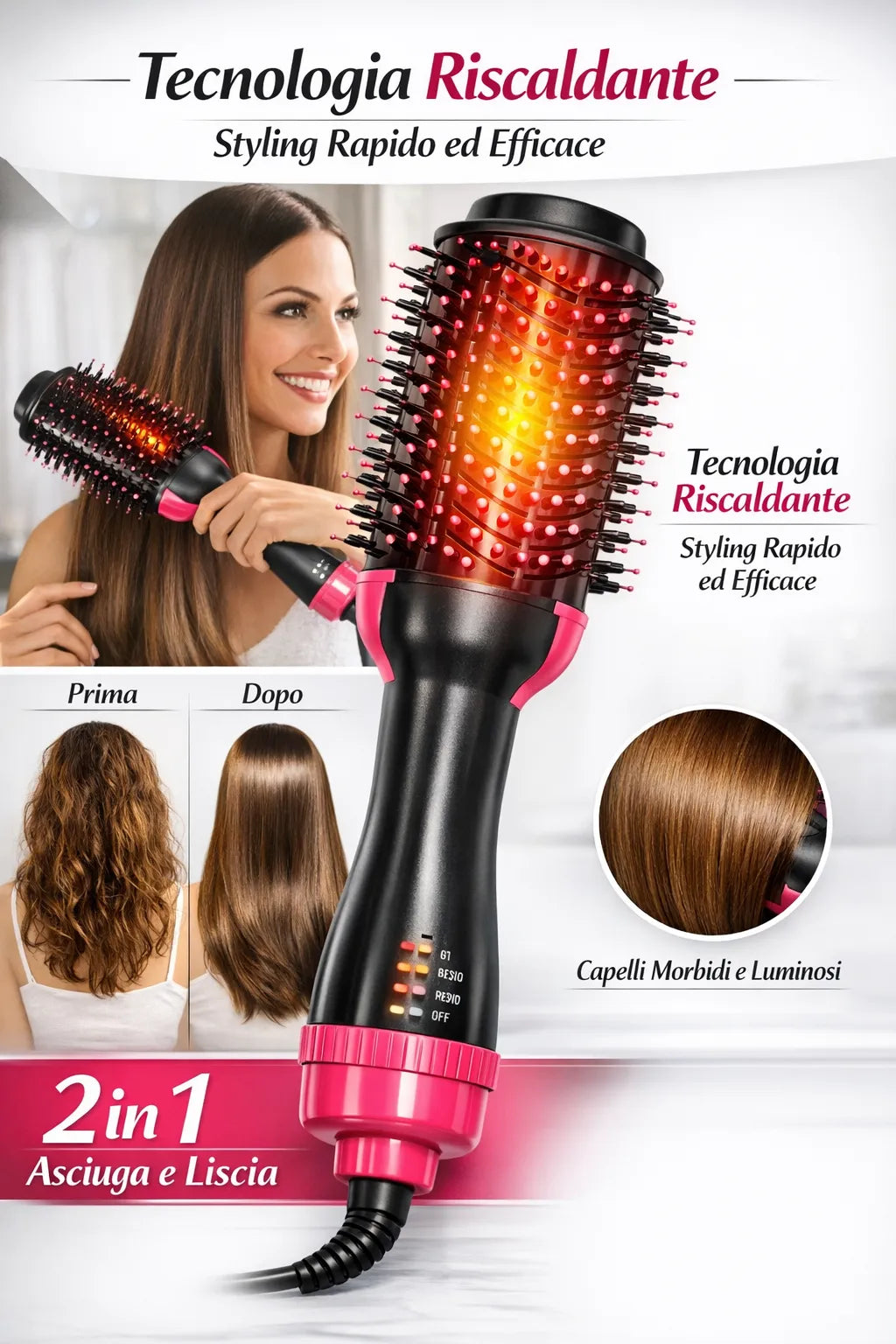 ASCIUGA, LISCIA E RENDE I CAPELLI PIU LUCENTI
